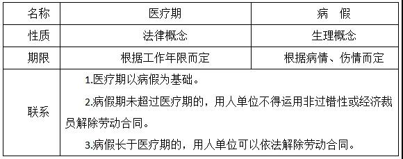 你是否注意到,《医疗期规定》中并未提到“病假”二字,而是使用了“医疗期”一词。医疗期,是指劳动者本人因患病或非因工负伤,需要停止工作医疗时,企业应该根据劳动者本人实际参加工作年限和在本单位工作年限,给予一定的医疗假期。医疗假期又叫病假假期,但二者又有明显区别,具体联系与区别表载如下: