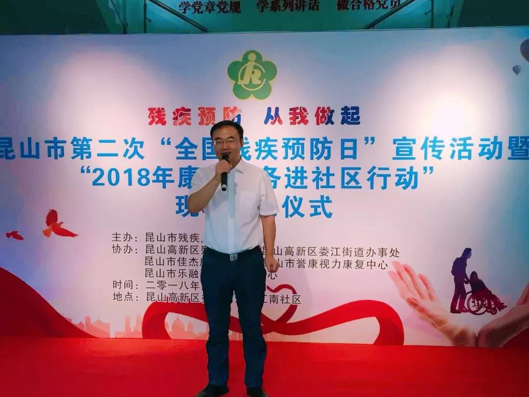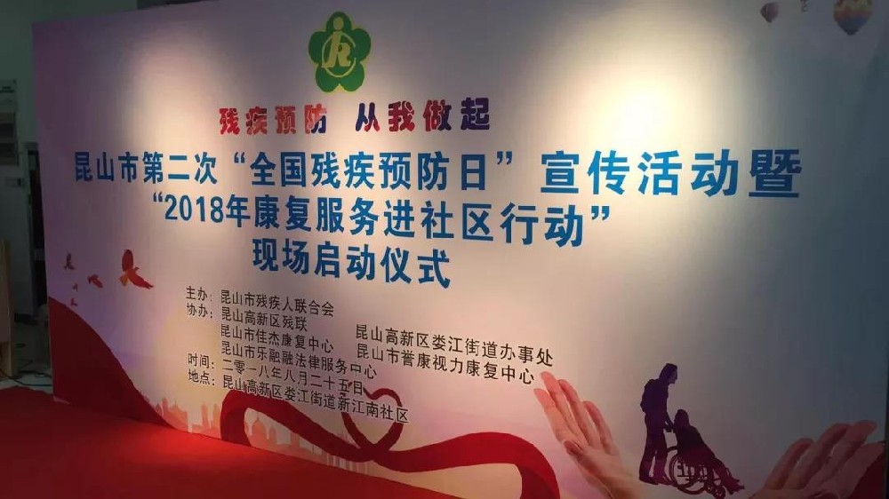 8月25日是第二次全国残疾预防日,为贯彻落实党中央、国务院关于残疾预防的决策和部署,推动《残疾预防和残疾人康复条例》《国家残疾预防行动计划(2016-2020)年》的顺利实施,增强全社会预防意识,2018年08月25日由昆山市残疾人联合会主办,昆山高新区残联、昆山高新区娄江街道办事处、昆山佳杰康复中心、昆山市誉康视力康复中心、昆山市乐融融法律服务中心协办的第二个全国残疾预防日宣传活动"2018年康复进社区行动"现场启动仪式在昆山市高新区娄江街道新江南社区举行。