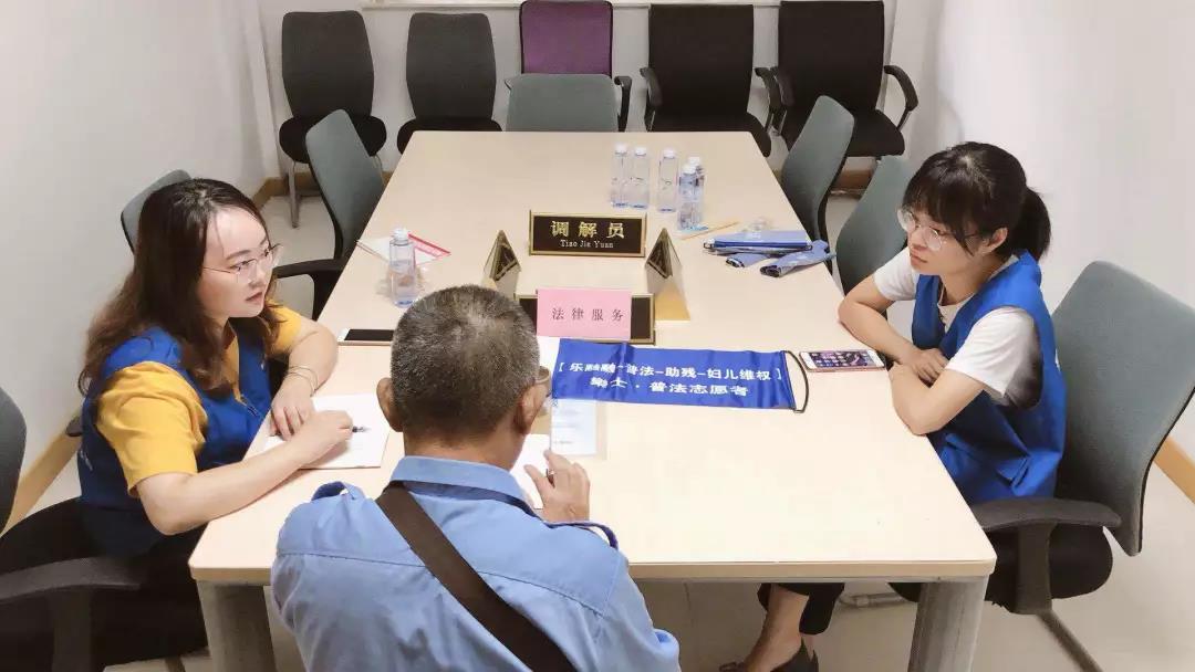 昆山市乐融融法律服务中心两名律师正在为市民提供公益法律服务咨询。