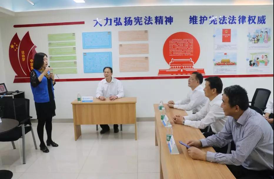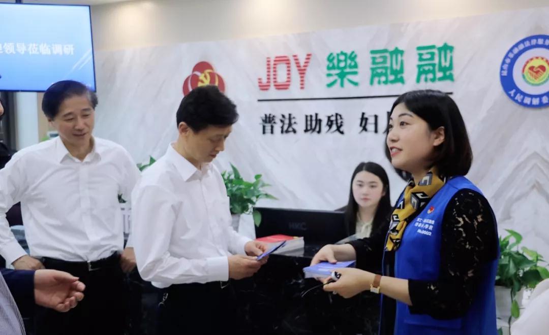 乐融融主任张亮、季君理事长向调研团详细介绍了乐融融服务中心成立初衷、组织机构与运作方式、举办过的公益活动及"家事公众评判庭"、"人民调解委员会"、“首家法律图书馆”、“乐融融党支部”等特色产品。